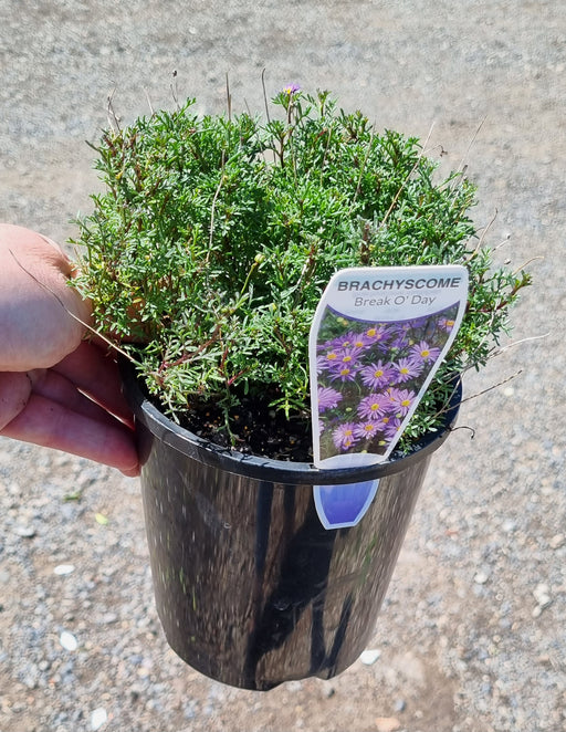Vibrant dark purple-lavender daisy flowers in spring, above a fine ferny green lowgrowing groundcover, ideal for rockeries and mixed borders.