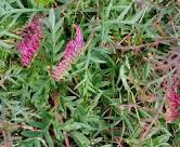 A stunning and dense evergreen ground-cover with large, dark red-pink-fuchsia toothbrush flowers which bloom throughout much of the year
